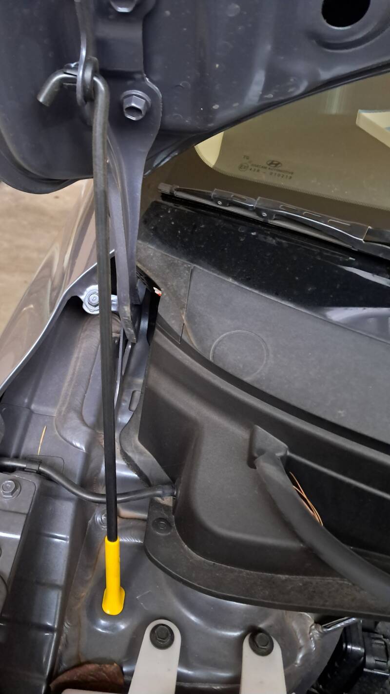 terzo, alzare il cofano motore e con molta attenzione sollevare l'asta di supporto per mettere in sicurezza l'apertura del cofano.